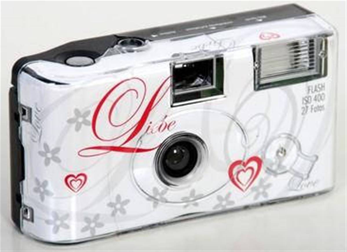 Cet appareil photo jetable est apprécié par les futurs mariés car il s'intégrera à la décoration de vos tables.